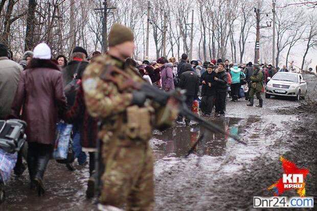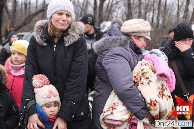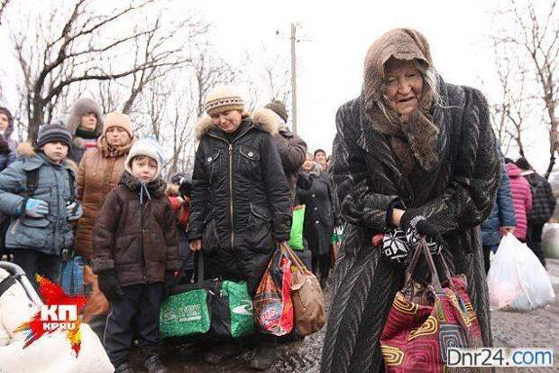 Люди начали выходить из города ранним утром. На первую колонну беженцев мы нарвались уже на окраине Горловки. Битком забитые машины с запотевшими изнутри стеклами и белые простыни, платки и шарфы на антеннах и зеркалах. Вещей у этих людей практически не было — бежали, кто в чем был, до предела …